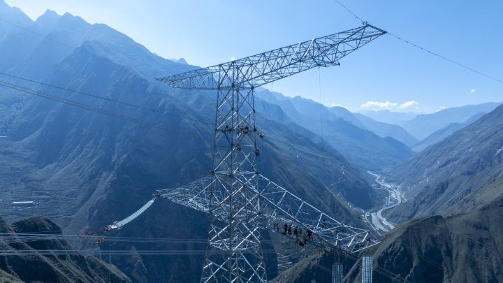 来源:多乐现金游戏 发布时间:2025-10-06 07:13:06十月的川西高原,秋风裹着寒意掠过峡谷。国庆假日,在阿坝藏族羌族自治州汶川县一处600米深的峡谷间,几名电力工人正沿着导线当心移动,如同在高空“走钢丝”。他们要完结的是阿坝—成都东1000千伏特高压沟通输电工程川西段的首轮放线。